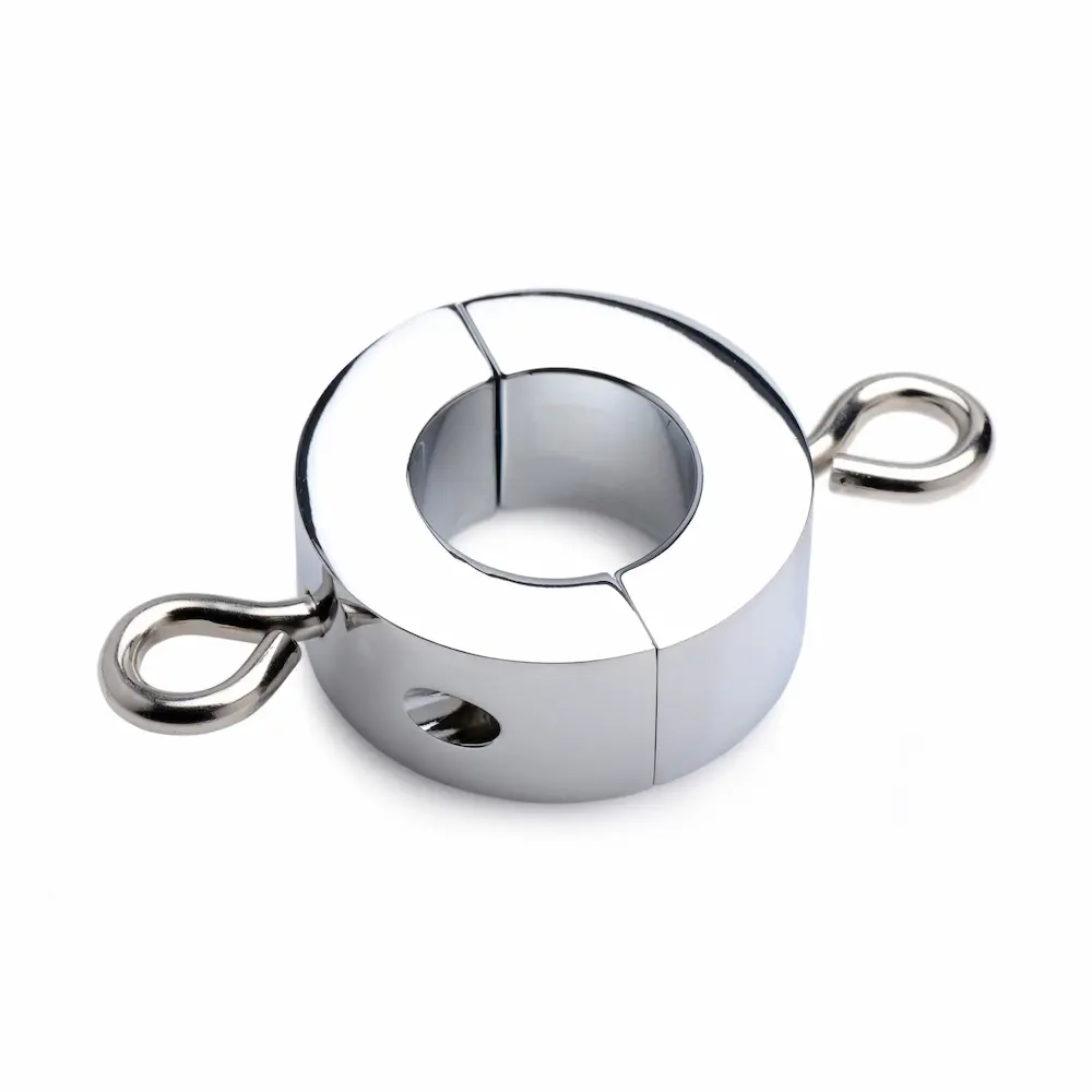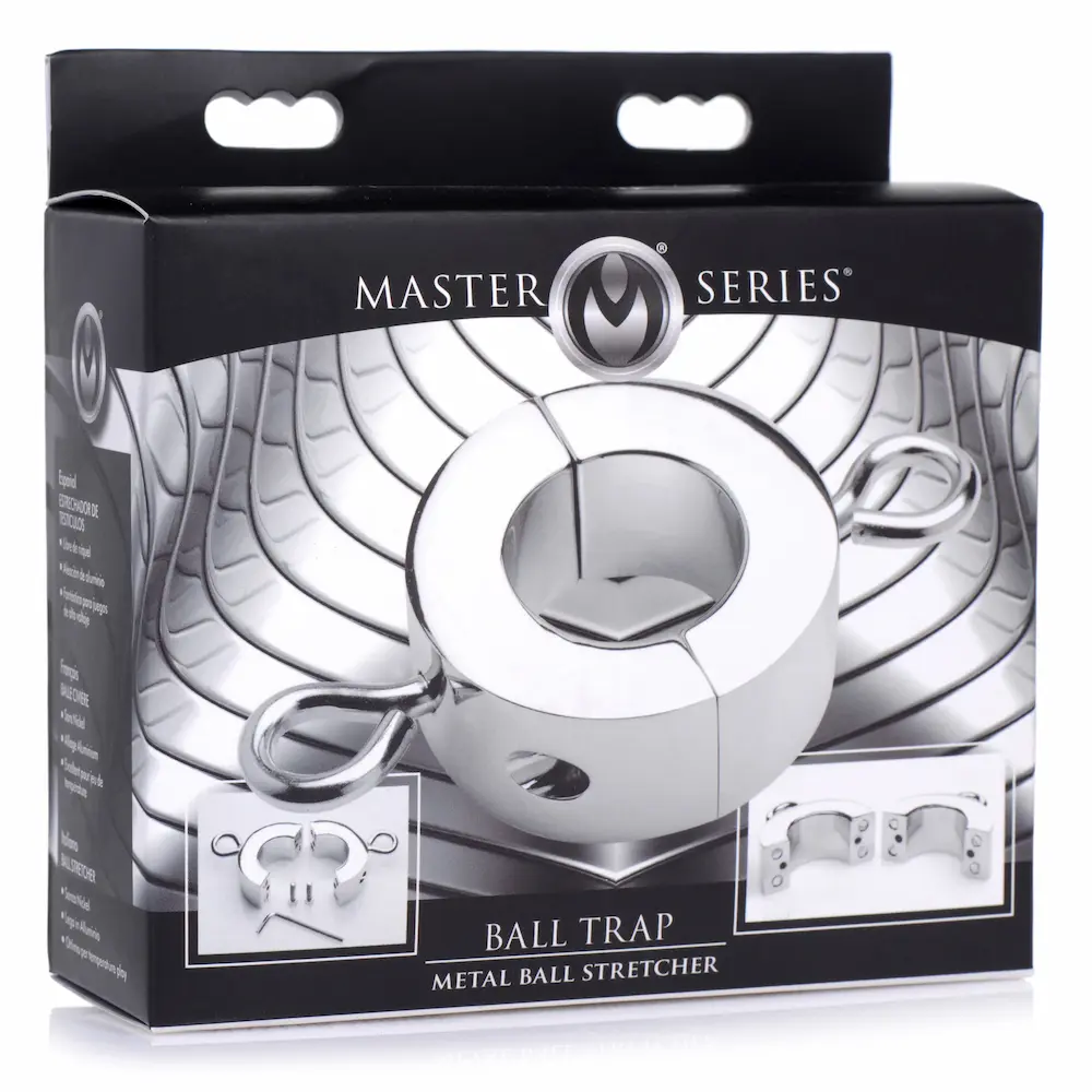 Indulge in intense ball-tugging play with the Ball Trap! Bring some heavy metal to your naughty activities and feel the satisfying stretch from this weighty ring. Designed to pull down on your sack with 11.6 ounces (220 grams) of weight, this metal ball stretcher is crafted for BDSM enthusiasts with a penchant for testicular play.
