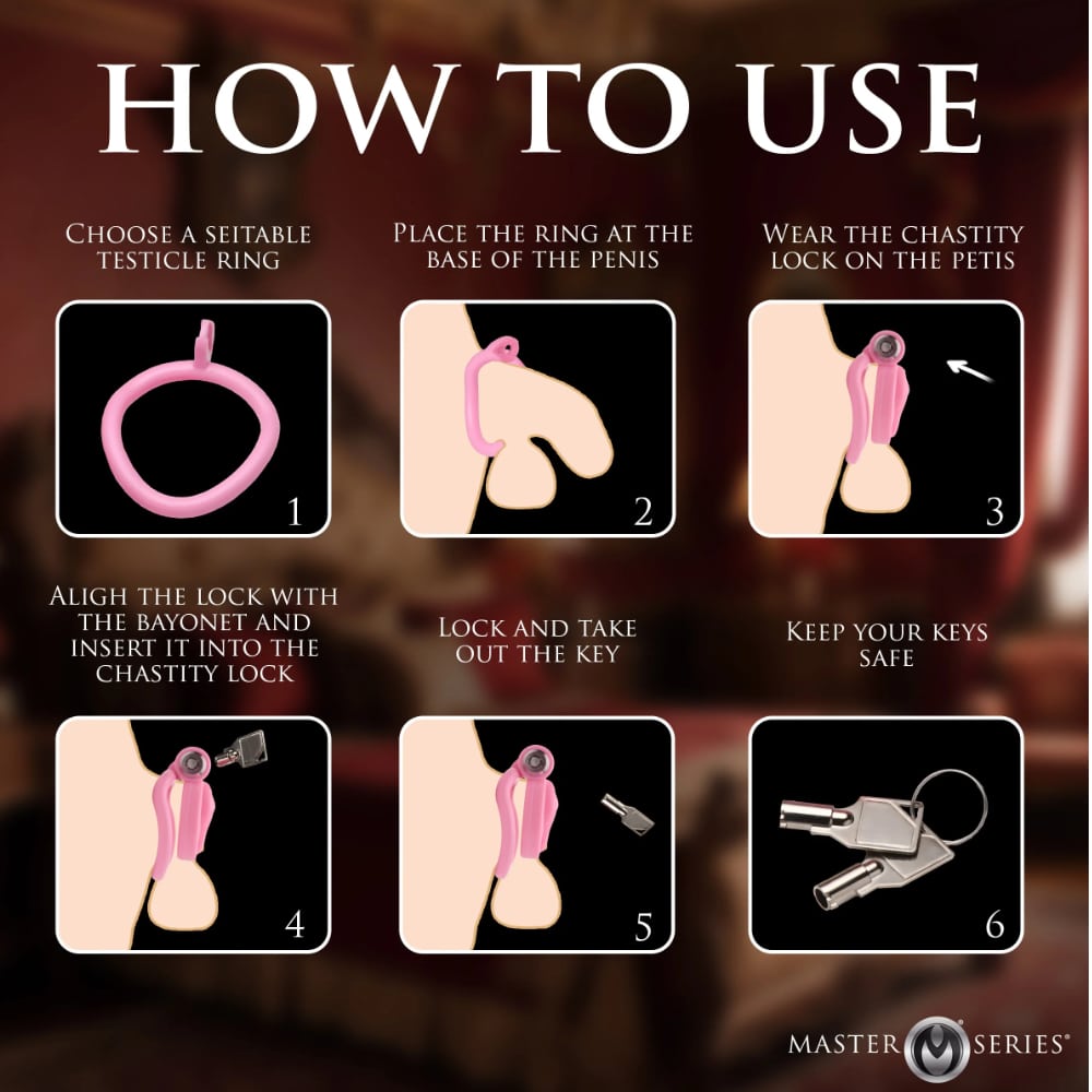 Discover a new world of sensual submission with the Pussification Vulva Chastity Cage. Perfectly designed to transform your appearance, this unique device features an adorable vulva that delicately conceals the tip of your member, offering a feminized look. Whether for personal exploration or relinquishing control to your Keyholder, this chastity cage ensures total restraint and prevents any chance of self-gratification. With five ring sizes available, you can find the perfect fit to secure the device comfortably behind your testicles. Rest assured, the metal used is nickel-free for safety. The set comes with two keys—one for your Keyholder and a spare for emergencies.