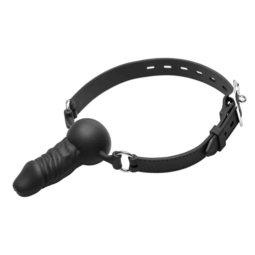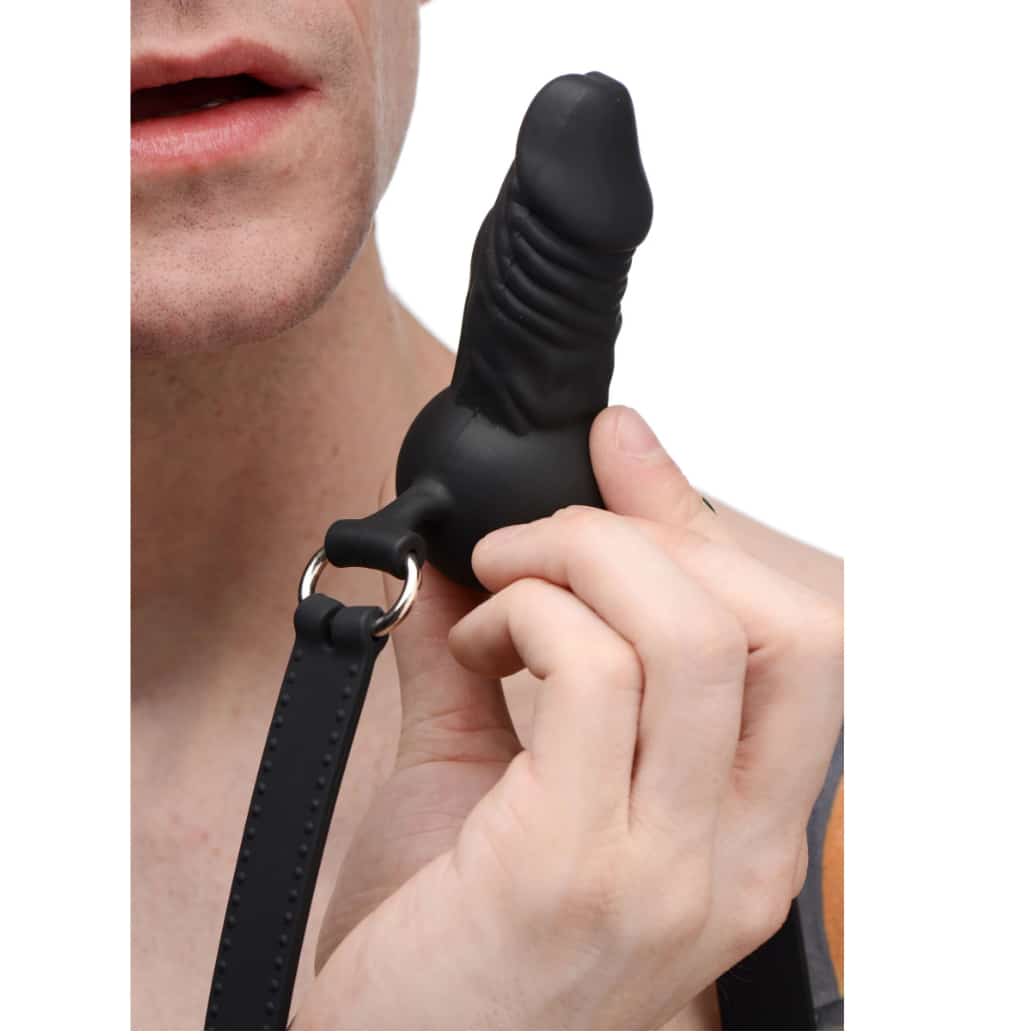 This erotically shaped gag features a penis mouth piece with semi realistic texture detailing. Made of premium silicone, the Suppressor is non-porous and hypo allergenic. The adjustable silicone straps are attached to the gag by two metal O-rings. Use the optional locking feature by adding your own padlock to secure your subject. The gag can be worn with the penis in to restrict their speech, or with it out to force them to pleasure you. Whether in or out, this devious piece will keep your plaything perfectly gagged and compliant.