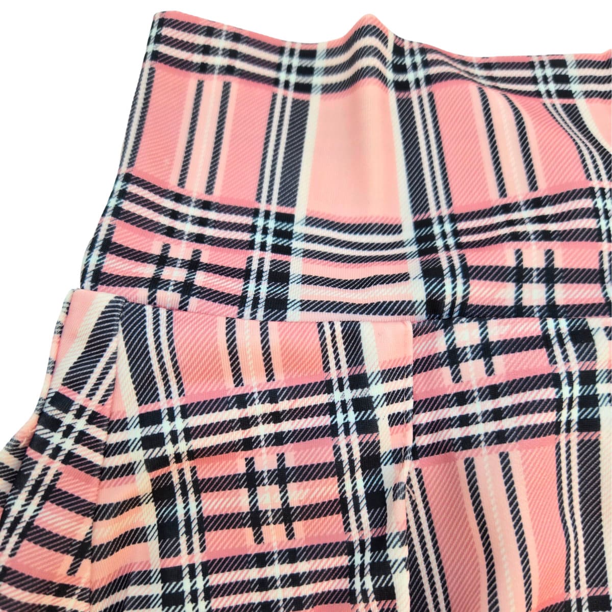 ✦ Classic pleated mini skirt design in a vibrant pink plaid pattern